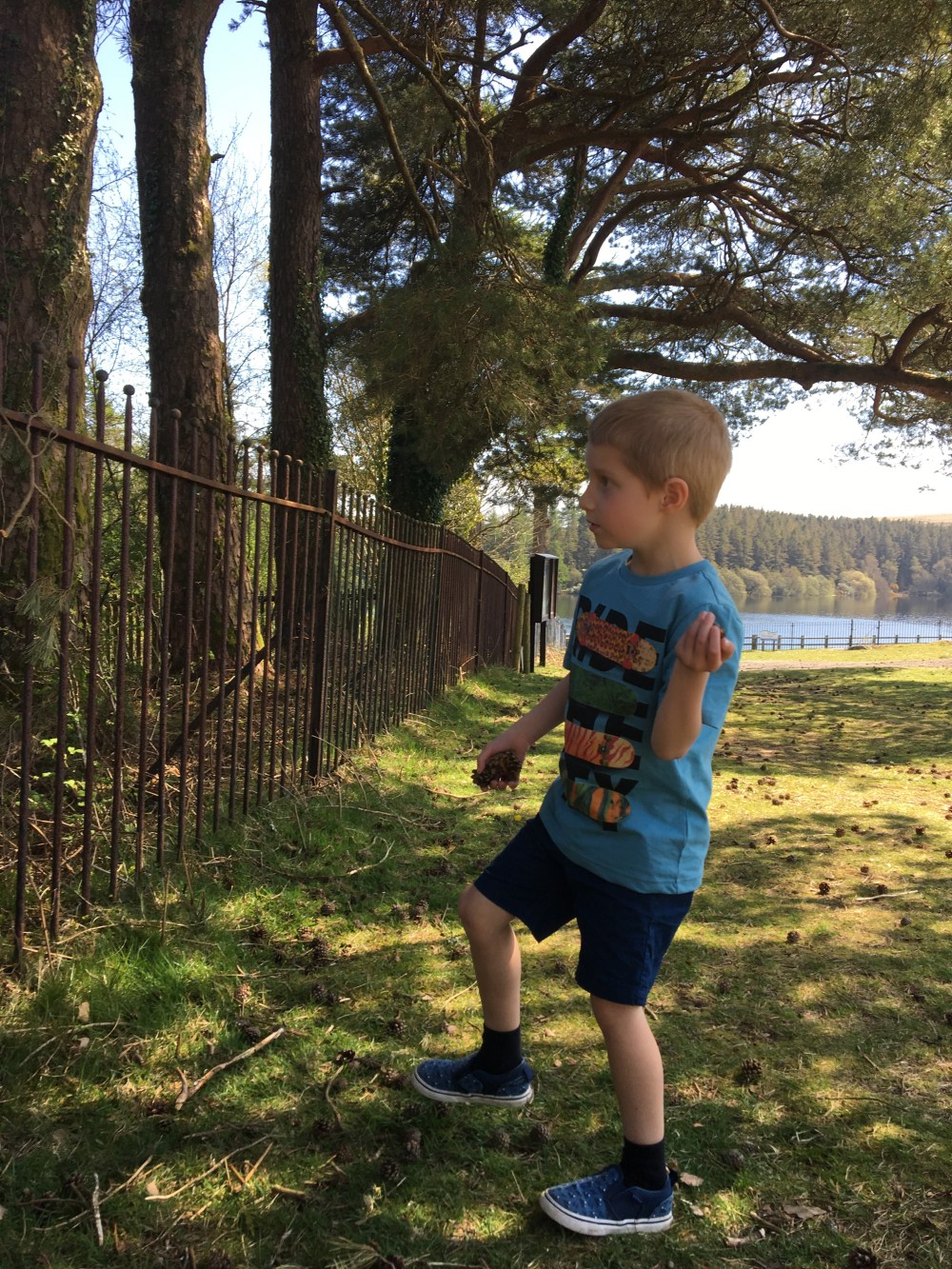 We got back up to the car park and decided to make ourselves a cup of tea and have some snacks. Edward didn’t join in for this activity and decided to throw pine cones over a fence….