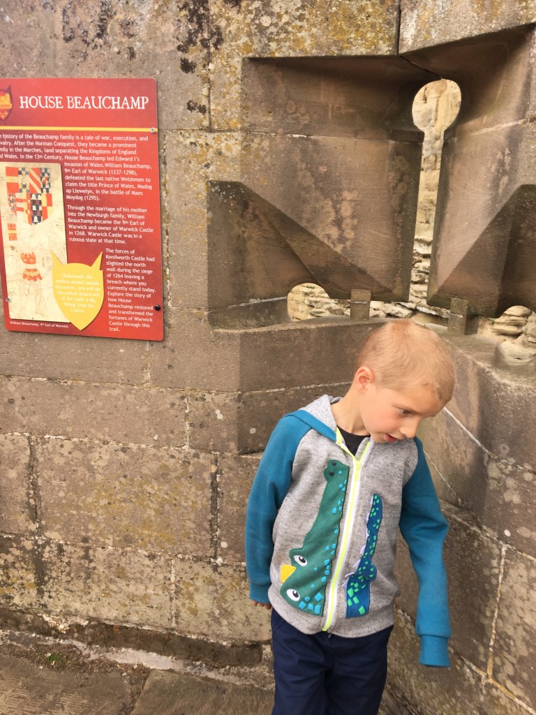 It is best to visit Warwick on a dry day because you have to walk for 20 minutes from the car park to the Castle entrance. Fortunately for us it was a sunny day and Edward is generally quite happy walking….that is until to tell him which was he should be going. So Daddy ended up putting him on his shoulders. If you have a Blue Badge then parking is much closer to the Castle.